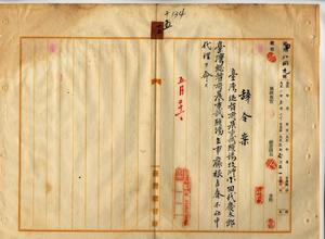 一五 台湾総督府農事試験場長高田元治郎ノ内申ニヨリ台湾総督府農事試験場技師小田代慶太郎ニ台湾総督府農事試験場主事藤根吉春不在中代理ヲ命ス
