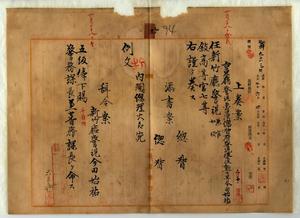 九 警察本署長亀山理平太ト蕃務本署長大津麟平ノ内申ニヨリ台東庁警視兼台湾総督府警視今田始祐ヲ新竹庁警視ニ任シ(兼官如故)高等官七等ニ叙シ五級俸ヲ下賜シ警務課長兼蕃務課長ヲ命ス(内申書中に新竹庁警視宇野英種休職に関する内申案文あり)