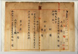 七 風土不良ニヨリ疾病ニ罹リ退官ヲ願出タル台湾総督府警視高塚彊ノ件ニ付蕃務本署長事務取扱民政長官内田嘉吉ヨリ本人ハ蕃地討伐上功績アルノミナラス右退官ハ行政整理ノ趣旨ヲ包含シタルモノナル為メ特別ノ詮議ニヨリ規則上最高額ノ賞与ヲナスヘキトノ添書アルヲ以テ取扱フコトトシ台湾総督府警視高塚彊ヲ依願本官ヲ免シ(九月一五日付)二級俸ヲ下賜(九月一四日付)シ事務格別勉励ニ付キ一時金ヲ賞与(九月一五日付)スルノ件