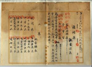 一五 高等官陞等昇級内申書一括綴一五-1 官房各課長、参事官、各局署部長ヘ高等官陞等昇級及ヒ判任官以下ノ昇級内申ノ提出期限ノ件、税関長、台北・台中・台南各医院長、中学校長、国語学校長、医学校長、高等女学校長、練習所長、研究所長、農事試験場長、阿里山作業所長、作業所長、港務所長、台北・台中・新竹・台南・嘉義・阿緱・桃園・宜蘭各庁長、台北・台中・台南各監獄長ヘ奏任待遇者ヲ含ム高等官陞等昇級及ヒ判任官待遇者ヲ含ム判任官昇級内申ノ提出期限ノ件、覆審法院長・同検察官長、鉄道部長、工事部長、専売局長ヘ高等官陞等昇級内申ノ提出期限ノ件、台北・台中・台南ヲ除ク各医院長、台北・新竹・台中・嘉義・台南・阿緱・桃園・宜蘭ヲ除ク各庁長、苗栗郵便局ヲ除ク各郵便局長、台湾神社宮司ヘ判任官待遇者ヲ含ム判任官昇級内申ノ提出期限ニ付秘書課長ヨリノ通牒案一括一五-2 秘甲第一三四〇号総督府事務官石井為吉以下三七名陞等上奏案総督府事務官石井為吉・総督府技師野呂寧・総督府事務官西野元ヲ高等官三等ニ陞叙シ、医院医長兼医学校教授藤田秀太郎・総督府高等女学校長尾田信直・法院判官山田示元・法院判官久保惟修ヲ高等官四等ニ陞叙シ、総督府中学校教諭元田脩三・総督府高等女学校教諭巽賢喜智・新竹庁事務官猪股静治・台北庁警視市来半次郎・総督府典獄上田孫三郎・臨時台湾総督府工事部技師松本虎太・医院医長兼医学校教授阿部賚夫ヲ高等官五等ニ陞叙シ、総督府通信事務官補野村勘四郎・総督府専売局技師角田秀丸・法院通訳飛松次郎・警察官及司獄官練習所教官伊藤宗也・新竹庁警視兼総督府警視今田始祐・阿緱庁警視小山謙・総督府中学校教諭田上他吉・阿緱庁技師□田清之輔・台北庁事務官野口有国・台北庁事務官小川要七・総督府作業所技師兼総督府技師三木鹿三郎・総督府作業所技師小川亮吉・総督府事務官藤井恭敬・総督府事務官古木章光・総督府鉄道部技師小山三郎・総督府研究所技師兼総督府技師中沢亮治・総督府研究所技師今井道・総督府技師稲村時衛・総督府農業試験場技師石井仁三郎・総督府鉄道部事務官白勢黎吉・医院医員森滋太郎・総督府通信事務官補鈴木金之介ヲ高等官六等ニ陞叙シ、臨時台湾総督府工事部技師渡辺了武ヲ高等官七等ニ陞叙スル上奏案並ニ内務大臣宛台湾総督府事務官石井為吉外三六名陞等上奏添書案一五-3 秘甲第一三四〇号覆審法院長台湾総督府法院判官石井常英ヲ高等官一等ヘ陞叙スル内閣総理大臣宛内申案及ヒ内務大臣宛添書案一五-4 内務大臣宛添書案並ニ事務官小林音八・税務官古木章光・事務官菊池武芳・事務官高橋親吉・医院医員高橋京造ノ俸給辞令書ニ関スル申添案ノ件一五-5 総督府事務官石井為吉・医院医長芳沢鷹之助・総督府事務官楠正秋・医院医長藤田秀太郎・医院医員門馬健也・医学校教授吉田坦蔵・総督府参事官片山秀太郎・総督府防疫事務官国府小平・医院医員河田好之・新竹庁事務官猪股静治・工事部技師松本虎太・阿緱庁事務官林礼蔵・総督府技師金子昌太郎・法院判官中上友三郎・桃園庁警視永田綱明・嘉義庁事務官宇都宮規矩夫・総督府通信事務官補野村勘四郎・総督府事務官藤井恭敬・総督府事務官古木章光・鉄道部技師小山三郎・研究所技師中沢亮治・総督府技師稲村時衛・農業試験場技師石井仁三郎・鉄道部事務官白勢黎吉・農事試験場技師井原英市・医院医員東条経治・総督府通信事務官補鈴木金之介・阿里山作業所技師中里正・台北庁警視三上喜千蔵・医学校助教授横川定・医院医員川上和叔六・専売局事務官小西恭介・工事部技師渡辺了武・監獄医伊良子暉造・工事部事務官鎌田正威・総督府事務官本山文平ノ昇級辞令案一五-6 石井常英・石井為吉外三六名官等陞叙ノ発表日ニ付内務秘書官ヨリ総督府秘書課長宛電報一五-7 大正二年九月 高等官昇等昇級調一束一五-8 大正二年九月 高等官昇等昇級内申書綴一五-9 高等官昇等昇級内申ノ者ニ対スル意見書控一五-10 大正二年九月ノ高等官ノ昇等昇級ニ関スル秘書課長ヨリ各官衙長ヘノ通知案綴込一五-11 中学校教諭元田脩三ノ「脩」ニ対スル内務秘書官ヨリ総督府秘書課長ヘノ問合セ及ヒ其ノ電報ニ対スル返電案ノ件
