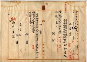一三 疾病ニ罹リ勤務ニ堪ヘサル旨ヲ以テ辞職ヲ願出タル台湾総督府医院医長兼台湾総督府医学校教授臼杵才化ヲ高等官四等ニ陞叙シ依願本官並ニ兼官ヲ免シ事務格別勉励ニ付キ一時金ヲ賞与ス