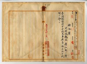 一四 台湾総督府中学校長土屋員安ノ内申ニヨリ台湾総督府中学校教諭広江万次郎ニ台湾総督府中学校長土屋員安不在中代理ヲ命ス