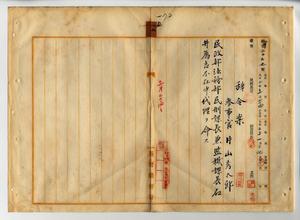 一五 法務部長手島兵次郎ノ内申ニヨリ参事官片山秀太郎ニ民政部法務部民刑課長兼監獄課長石井為吉不在中代理ヲ命ス