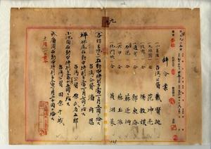 九 警察本署長亀山理平太ノ内申ニヨリ小基隆在勤台湾公医載賢挺・大坵園在勤台湾公医范坤亮・後壠在勤台湾公医楊敦謨・通宵在勤台湾公医郭東海・東名港在勤台湾公医蘇逢炳・六甲在勤台湾公医蘇玉振・北門嶼在勤台湾公医黄炳篆ニ在勤中特別手当一ヶ月五円ヲ給シ、坪林尾在勤台湾公医潘再恩ニ同上特別手当七円ヲ給シ、小池角在勤台湾公医原武者五郎ニ同上特別手当一五円ヲ給シ、成広湾在勤台湾公医田原干城ニ同上特別手当二〇円ヲ給ス