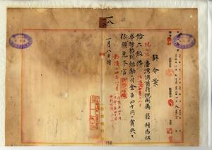 一八 麻刺利亜兼慢性腸胃加荅児症ニ罹リ辞職ヲ願出タル台湾総督府税関後壠支署勤務台湾総督府税関属藤村乕松ヲ昇級ノ上事務格別勉励ニ付一時金ヲ賞与シ依願本官ヲ免ス