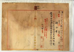 二二 花蓮港庁長中田直温ノ内申並ニ之ヘノ秘書課長ヨリノ指示ニ従ヒ提出シタル依頼書ニヨリ麻拉利亜ノ為メニ退官シタル元花蓮港庁税務吏平松敬貴ニ在職中事務格別勉励ヲ以テ一時金ヲ賞与ス