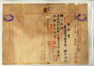 二六 疾病ニヨリ辞職ヲ願出タル台湾総督府税関大稲埕出張所勤務台湾総督府税関属檜垣順蔵ヲ昇級ノ上事務格別勉励ニ付一時金ヲ賞与シ依願本官ヲ免ス