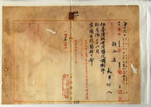 四一 台湾総督府宜蘭医院長事務取扱森滋太郎ノ内申ニヨリ金沢医学専門学校薬学科卒業ノ大日彦八ヲ台湾総督府医院調剤師ニ任シ宜蘭医院勤務ヲ命ス