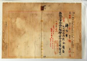 四六 阿緱庁長佐藤謙太郎ノ内申ニヨリ疾病ニ罹リ依願退職シタル元阿緱庁属熊谷広吉ニ在職中事務格別勉励ニ付一時金ヲ賞与ス