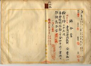 一三 台北庁長井村大吉ノ内申ニ依リ台湾公学校教諭安芸尚一ハマラリアニ罹リ職ニ堪ヘサル旨ヲ以テ辞職願出タルニヨリ月俸三五円ヲ給シ事務格別勉励ニ付キ一時金ヲ賞与シ本官ヲ免ス