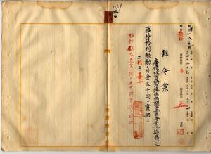 三〇 台湾地方病及伝染病調査委員長民政長官代理高田元治郎ノ内申ニヨリ台湾地方病及伝染病調査委員会書記近藤一之ハ事務格別勉励ニ付キ一時金ヲ賞与シ嘱託ヲ解ク