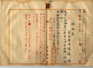 三八 台南庁長松木茂俊ノ内申ニヨリ病気治療中ノ台湾総督府台南庁属渡辺満ニ文官分限令第一一条第一項第四号ニヨリ休職ヲ命シ事務格別勉励ニ付キ一時金ヲ賞与ス