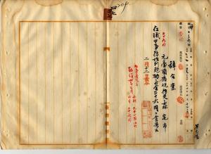 四七 台南庁長松木茂俊ノ内申ニヨリ元台湾総督府台南庁税務吏森宅市ハ疾病ニ罹リ職ニ堪ヘサル趣ヲ以テ辞職ヲ願出タルニヨリ本官ヲ免シ在職中事務格別勉励ニ付キ一時金ヲ賞与ス