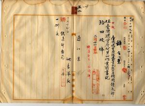 五二 台湾総督府阿里山作業所長事務取扱新元鹿之助ノ内申ニヨリ台湾総督府鉄道部書記楯岡鐘太郎ヲ阿里山作業所鉄道運輸事務取扱ノ為メ台湾総督府阿里山作業所書記ニ任ス