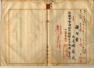 六〇 殖産局長高田元治郎ノ具申ニヨリ元雇佐藤武ニ病気ヲ以テ辞職ヲ願出タルニヨリ在職中事務格別勉励ニ付キ一時金ヲ賞与ス