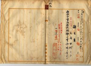 六七 通信局長心得角源泉ノ内申ニヨリ元雇中村イトハ病気ノ為メ辞職ヲ願出タルヲ以テ本職ヲ解キ在職中事務格別勉励ニ付キ一時金ヲ賞与ス