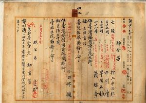 四二 台北医院長稲垣長次郎ノ内申ニヨリ元中学校嘱託村上平治郎・台北医院嘱託市川清・台北医院嘱託早田五助・台北医院雇翁瑞春ヲ台湾総督府医院医師ニ任シ台北医院勤務ヲ命シ、台北医院嘱託小田部鎮ヲ台湾総督府医院調剤師ニ任シ台北医院勤務ヲ命ス