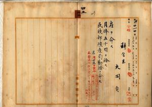四五 殖産局長高田元治郎ノ具申ニヨリ元三井合名会社社員大岡貞ニ雇ヲ命シ台湾総督府民政部殖産局勤務ヲ命ス