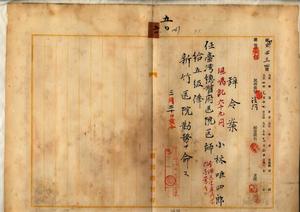 五〇 新竹医院長事務取扱中川幸庵ノ内申ニヨリ新竹医院嘱託小林唯四郎ヲ台湾総督府医院医師ニ任シ新竹医院勤務ヲ命ス