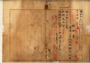 七一 慢性麻刺里亜ニ罹リ職ニ堪ヘザルヲ以テ辞職ヲ願出タル台湾公学校教諭鈴木安吉ニ昇級ノ上依願本官ヲ免シ事務格別勉励ニ付一時金ヲ賞与ス