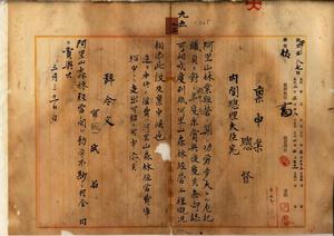九五 阿里山作業所長事務取扱新元鹿之助ノ上申ノ阿里山森林経営功労者ニ対スル年度末賞与ニ付阿里山作業所技師ノ新元鹿之助・菅野忠五郎・進藤熊之助・網島政吉・中里正・重松栄一・賀田直治・高山節繁、鉄道部技師ノ川津秀五郎・小山三郎、阿里山作業所事務官神谷由道、総督府事務官阿部滂ニ賞与ヲ給ス