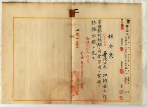 一一 辞職ヲ願出タル羅東在勤台湾公医加納龍太郎ヘ事務格別勉励ニ付一時金ヲ賞与シ依願本官ヲ免ス