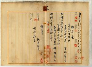 二七 新竹庁長家永泰吉郎ト阿緱庁長佐藤謙太郎ノ内申ニヨリ罩蘭公学校長台湾公学校校長重松峯吉ニ内埔公学校長ヲ命シ、罩蘭公学校勤務台湾公学校教諭重松峯吉ニ内埔公学校勤務ヲ命ス