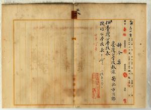 三八 花蓮港庁長中田直温ノ内申ニヨリ水尾公学校勤務台湾公学校教諭菊池市次郎ニ台湾公学校長兼任ヲ命シ拔仔公学校長ヲ命ス