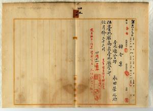 四三 台北庁長井村大吉ノ内申ニヨリ台北庁警部永田栄之助ヲ台北庁属兼台北庁警部ニ任ス