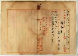 七一 通信局長角源泉ノ内申ニヨリ病気危篤ニ陥リタル雇中村永蔵ニ増俸ノ上事務格別勉励ニ付一時金ヲ賞与ス