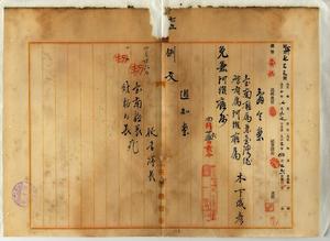 七五 阿緱庁長佐藤謙太郎ト台南庁長松木茂俊ノ内申ニヨリ台南庁属兼台湾総督府属阿緱庁属木下茂彦ノ阿緱庁属兼官ヲ免ス