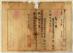 七七 自己便宜ニヨリ辞職ヲ願出タル台北中街郵便局長台湾総督府三等郵便局長李万居ニ依願本官ヲ免シ、広島尋常中学校卒業陸軍砲兵少佐原田三五ヲ台湾総督府三等郵便局長ニ任シ台北中街郵便局長ヲ命ス