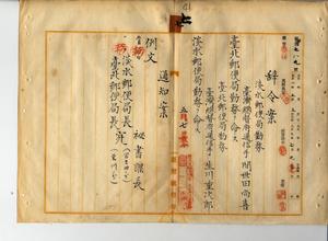 七 淡水郵便局長小野塚斧太郎ノ内申ニヨリ淡水郵便局勤務台湾総督府通信手間世田尚喜ニ台北郵便局勤務ヲ命シ、台北郵便局勤務台湾総督府通信手生川重次郎ニ淡水郵便局勤務ヲ命ス