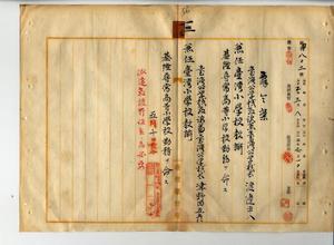 一三 台北庁長井村大吉ノ内申ニヨリ派遣教授所設置ノ為メ必要ナルニヨリ台湾公学校教諭兼公学校長渡辺平八ニ台湾小学校教諭ヲ兼任シ基隆尋常高等小学校勤務ヲ命シ、台湾公学校兼台湾公学校長津野田丑彦ニ台湾小学校教諭ヲ兼任セシメ基隆尋常高等小学校勤務ヲ命ス