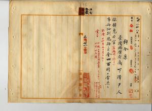 二七 疾病職ニ堪ヘザルヲ以テ辞職ヲ願出タル台湾総督府属下沢尹人ニ依願本官ヲ免シ事務格別勉励ニ付一時金ヲ賞与ス
