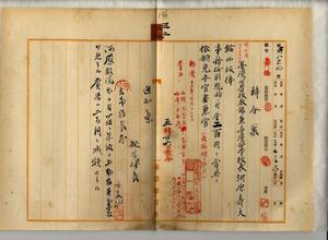 三二 麻刺里亜兼脳神経衰弱症ニ罹リ職務ニ堪ヘサルニヨリ辞職ヲ願出タル阿公店公学校勤務台湾公学校教諭兼台湾公学校校長河原寿夫ヲ昇級ノ上事務格別勉励ニ付一時金ヲ賞与シ依願本官並ニ兼官ヲ免ス[国館原本文書番号141・142・143の枝徳二より三村三平総督官房秘書課長宛五月二五日付書翰は、誤って綴られているが、これは次の第三三文書の案件のものである。]
