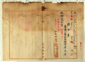 七 疾病ニ罹リ職ニ堪ヘザルヲ以テ辞職ヲ願出タル嘉義尋常高等小学校勤務台湾小学校教諭宮原民平ニ依願本官ヲ免ス