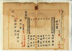 三二 阿里山作業所長事務取扱高田元治郎ノ内申ニヨリ台湾総督府鉄道部書記兼台湾総督府阿里山作業所書記ノ大坪種辰・山田敬介・小川義郎・吉岡芳松・高橋富吉・池田覚之亟・坪井多門・宮崎忠平及ヒ台湾総督府鉄道部技手兼台湾総督府阿里山作業所技手吉武千代蔵ノ兼官ヲ免ス
