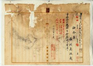 五四 学務部長心得隈本繁吉ノ内申ニヨリ疾病職ニ堪ヘザルヲ以テ辞職ヲ願出タル雇川島政義ニ事務格別勉励ニ付一時金ヲ賞与ス