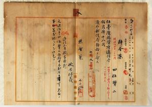 八 淡水郵便局長小野塚斧太郎ノ内申ニヨリ淡水郵便局ノ電気通信事務ニ従事セル通信助手四位賢二ヲ台湾総督府通信手ニ任シ淡水郵便局勤務ヲ命ス