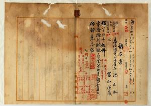 三五 麻刺里亜ニ罹リ職ニ堪ヘザルヲ以テ辞職ヲ願出タル台湾総督府通信属ノ池正水ト同通信属宮山謙蔵ニ付台南郵便局長曽祢吉弥ノ一括内申ニヨリ夫々昇級ノ上事務格別勉励ニ付一時金ヲ賞与シ依願本官ヲ免ス