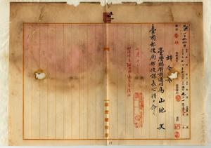 五一 台南郵便局長曽祢吉弥ノ内申ニヨリ台湾総督府通信属山地尖ニ台南郵便局課長心得ヲ命ス