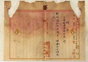 五三 通信局長角源泉ノ内申ニヨリ来ル七月一六日ヨリ新設サレル三等郵便局ノ為メ元通信属杉本初吉ヲ台湾総督府三等郵便局長ニ任シ苗栗郵便局長ヲ命シ、元通信属大津延吉ヲ台湾総督府三等郵便局長ニ任シ南投郵便局長ヲ命シ、元通信属上田兆三郎ヲ台湾総督府三等郵便局長ニ任シ斗六郵便局長ヲ命シ、元通信属池正水ヲ台湾総督府三等郵便局長ニ任シ桃園郵便局長ヲ命シ、元通信属真下誠一郎ヲ台湾総督府三等郵便局長ニ任シ葫蘆墩郵便局長ヲ命シ、元通信属伊東正夫ヲ台湾総督府三等郵便局長ニ任シ鳳山郵便局長ヲ命シ、元通信属荒木兼八ヲ台湾総督府三等郵便局長ニ任シ東港郵便局長ヲ命シ、元通信属松村三郎之輔ヲ台湾総督府三等郵便局長ニ任シ新営郵便局長ヲ命シ、元通信属山田吉次郎ヲ台湾総督府三等郵便局長ニ任シ瑞芳郵便局長ヲ命シ、元通信属中島辰太郎ヲ台湾総督府三等郵便局長ニ任シ蘇澚郵便局長ヲ命シ、元通信属宮山謙蔵ヲ台湾総督府三等郵便局長ニ任シ阿公店郵便局長ヲ命シ、元通信属三戸国太郎ヲ台湾総督府三等郵便局長ニ任シ[(三又河郵便局長)]ヲ命シ、元通信属市塚五郎九ヲ台湾総督府三等郵便局長ニ任シ樹杞林郵便局長ヲ命シ、元通信属金子啓介ヲ台湾総督府三等郵便局長ニ任シ叭哩沙郵便局長ヲ命シ、元通信属田内昇馬ヲ台湾総督府三等郵便局長ニ任シ西螺郵便局長ヲ命シ、元通信属赤尾三郎ヲ台湾総督府三等郵便局長ニ任シ新店郵便局長ヲ命シ、元通信属今村昇太郎ヲ台湾総督府三等郵便局長ニ任シ店仔口郵便局長ヲ命シ、元通信属橋本圭造ヲ台湾総督府三等郵便局長ニ任シ林内郵便局長ヲ命シ、元通信属宮洋太郎ヲ台湾総督府三等郵便局長ニ任シ通霄郵便局長ヲ命ス[本文書は、内申書に伺案を作成したもので、辞令原案は省かれている。]