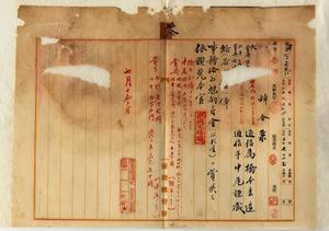 五八 麻刺里亜ニ罹リ職ニ堪ヘザルヲ以テ辞職ヲ願出タル通霄郵便局勤務台湾総督府通信属橋本圭造ト苗栗郵便局勤務台湾総督府通信手中尾謙蔵ニ関シ苗栗郵便局長杉本初吉ノ一括内申ニヨリ夫々昇級ノ上事務格別勉励ニ付一時金ヲ賞与シ依願本官ヲ免ス
