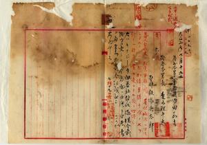 七四 蕃務本署長代理内田嘉吉ト警察本署長亀山理平太ノ連署内申ニヨリキナジー方面蕃社討伐隊現金前渡官吏トシテ同方面ヘ出張シタル警部飯塚兵太郎ヘ蕃人討伐又ハ捜索事務ニ関シ其地域内ヘ出張シタルトキハ其間加俸月俸十分ノ七ヲ給スル辞令書ヲ受ケタル義トナスノ件