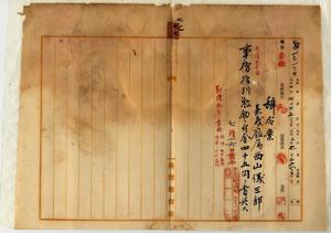 七七 嘉義庁長津田毅一ノ内申ニヨリ病気ノ為メ辞職ヲ願出タル嘉義庁属西山儀三郎ニ事務格別勉励ニ付一時金ヲ賞与ス