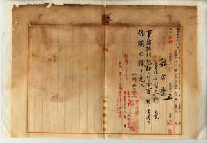 一二 疾病ニ罹リ職ニ堪エサル旨ヲ以テ辞職ヲ願出タルニヨリ阿緱庁下枋藔庄在勤台湾公医久野養育ニ阿緱事務格別勉励ニ付キ一時金ヲ賞与シ依願本職ヲ免ス