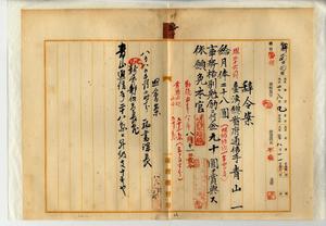 五〇 新竹郵便局長岡垣重蔵ノ内申ニヨリ疾病職ニ堪ヘサル旨ヲ以テ辞職ヲ願出タル台湾総督府通信手青山一ニ増給ノ上事務格別勉励ニ付キ一時金ヲ賞与シ依願本官ヲ免ス