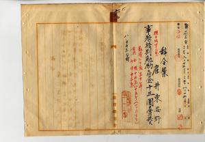 六〇 通信局長角源泉ノ内申ニヨリ御用済ニ付キ解職スル雇井東安野ニ在職中事務格別勉励ニ付キ一時金ヲ賞与ス