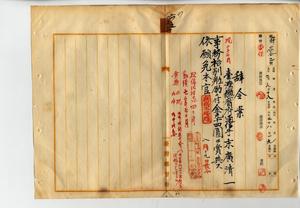 六五 嘉義郵便局長島覚治ノ内申ニヨリ麻刺里亜ニ罹リ疾病職ニ堪ヘサル旨ヲ以テ辞職ヲ願出タル台湾総督府通信手末広清一ニ事務格別勉励ニ付キ一時金ヲ賞与シ依願本官ヲ免ス